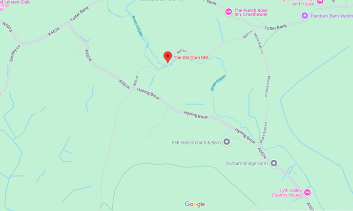 Follow the A5074 for approximately 4 miles, passing the Lyth Valley Hotel on your right. Take the second right after the Lyth Valley Hotel, there will be a sign at the end of the lane saying “Dove Nest Group”. Continue down the lane, until you come to the Crosthwaite Mill on your right (you will come to the carpark first).